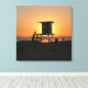 Coucher de soleil d'été à Sunset Beach, Californie. Lifeguard Shack 22 surplombant les toits de Long Beach.