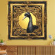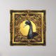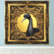 Une image saisissante avec une autruche noire contre un cadre ornemental doré et noir, évoquant un sentiment d'opulence et d'exotisme. Le contraste entre les plumes noires et épurées de l'autruche et les détails complexes et élégants du cadre crée une composition visuellement captivante.