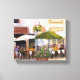 Une petite toile d'un café avec des gens est un cadeau parfait pour le ménage. Les couleurs sont vert, or et rose. Café art par REIFSNYDER©