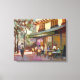Un café parisien en trottoir disponible en tailles de 8x10 à 24x36. Image enveloppée sur les côtés. Les couleurs sont or, vert et rose. Art français par REIFSNYDER©