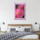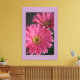 Toile Art représenté avec une photo de marguerites roses sur un arrière - plan de toile lavande.