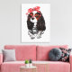 Ce design est composé d'un chien Cavalier King Charles Spaniel habillé d'un cardigan rayé, de lunettes de soleil rouges et d'un bandeau de pois.
