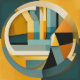Cercles et rectangles d'abstraction géométriques rétro. Faites une déclaration audacieuse dans votre espace avec cette peinture abstraite captivante inspirée des designs de Bauhaus. Ses cercles, ses courbes et ses rectangles aux couleurs vives de jaune, brun turquoise, noir et bleu ajouteront une touche d’élégance à votre décor.