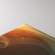 Illustration numérique d'un chat à air long brun aux yeux verts brillants. Le chat est positionné en profil 3/4, orienté vers la gauche, avec sa fourrure créée par la fumée. L'arrière - plan est sombre, ce qui accentue la fourrure brillante du chat et les motifs fluides et translucides qui l'entourent. L'éclairage met en valeur les oreilles du chat, avec une lumière chaude qui filtre à travers la fourrure, créant une atmosphère douce, presque mystique. La composition générale est élégante et rêveuse, mettant l'accent sur l'expression sereine du chat et la fluidité des éléments environnants.