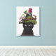 Toile Chat noir avec théière et hibou 2