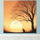 Toile Chat noir et silhouette d'arbre dans le Sun Set