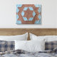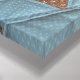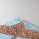 Bloc de courtepointe en motif "château" marron et bleu. Le "château" central est en forme d'étoile marron, entouré par le "mur 6 côtés" avec les "tours de guet" s'étendant du milieu des murs.