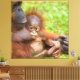 Dans un cadre vibrant, une mère orangue tient tendrement son bébé, encadré par une végétation luxuriante. Les yeux de l'adorable bébé scintillent d'innocence, ajoutant au charme de cette scène chaleureuse d'amour maternel au milieu de l'étreinte de la nature.