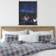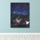 Starry Night art de Traci Van Wagoner imprimer, affiches, accessoires et cadeaux présente notre peinture originale de deux enfants et leur grand chien noir campant sous les étoiles en lisant un livre fantastique autour d'un feu de camp sur des chevaliers et des dragons. La magie de l'histoire tournoie dans le ciel étoilé pour montrer un chevalier et un dragon dans une éternelle danse nocturne des étoiles. Profitez d'un camp d'été en montagne.
