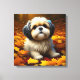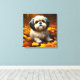 Mignonne chiot chien jouant dans la toile de feuilles d'automne jaune. Shih Tzu ou Lhaso Apso.