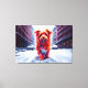 Toile Chien rouge marchant dans la rue d'hiver enneigée