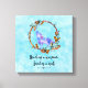 Impression de toile avec une illustration graphique composée d'une silhouette de loup d'aquarelle violette, en train de baiser sur la lune. À l'intérieur d'un dessin d'une couronne de bois, cristaux, plumes et perles. style boho cool. Citation typique : Coeur d'une âme guerrière d'un loup avec une ligne de séparation mignonne en bas avec un coeur boho au centre.