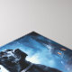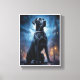 Un majestueux Black Great Dane debout au milieu de la ville avec l'éclat des lumières des immeubles voisins avec un ciel sombre.