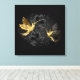 Colibris de bijoux en noir et or sur arrière - plan gris décoré de plantes. Bijoux. Oiseau doré. Oiseau d'or.