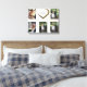 Un collage simple de photos de mariage entourant un cœur moderne sur fond en bois rustique avec une citation d'amour au milieu.