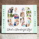 Créez votre propre cadeau unique de 60e anniversaire. Cette toile intelligente est une excellente façon d'afficher votre collage photo. Le modèle est configuré pour vous permettre d'ajouter vos photos préférées, qui apparaîtra automatiquement sous la forme du numéro 60. Vous pouvez également ajouter votre nom et votre année de naissance (ou votre nom) en caractères gras. L'exemple de libellé "What a Wonderful Life", est également entièrement modifiable et écrit dans la typographie de script gris foncé. Le design est complet avec des bordures vert menthe. Parcourez notre magasin pour coordonner les cadeaux et les cartes du 60e anniversaire.