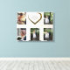 Un simple collage de photos de mariage entourant un cœur moderne sur un fond en bois rustique avec votre citation d'amour au milieu.