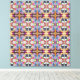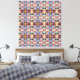 Un motif symétrique éclate de couleurs vives et de formes géométriques complexes. Le design répétitif présente des teintes de bleu, d'orange, de rose et de rouge, créant un effet kaléidoscopique.