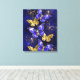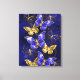 Composition des luxueux papillons saphir et bijoux en or sur arrière - plan bleu texturé.