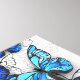 Vertical composition of réalistes, blue and white morpho butterflies on gray textured background. Morphine bleu.