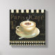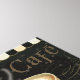 © Daphne Brissonnet / Pomme sauvage. Image d'une tasse de cappuccino, d'une soucoupe et d'une cuillère à café sur le côté. L'arrière - plan noir a les mots Paris Cafe dessus.