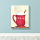 © Courtney Prahl / Wild Apple. L'image montre une tasse de Noël rouge avec des arbres blancs de Noël peints dessus. Il y a aussi de la mousse blanche sur le dessus de la tasse.