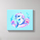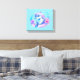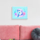 Impression d'art en toile avec une adorable illustration. Un dauphin bleu et violet entouré de jolis plantes sous-marins colorés.