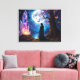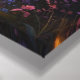 Une scène mystique se déroule avec une femme dans une robe qui coule debout au bord d'un lac tranquille, illuminé par la lumière d'une grande et brillante pleine lune. Des structures cristallines, éclatantes de couleurs, s'élèvent du sol, entourées de papillons florissants et d'un arbre ancien sous un ciel étoilé.