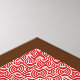cupcake au chocolat surmonté d'une cerise, dans un emballage décoratif de cupcake rouge et blanc, sur une affiche arrière - plan à motif tourbillon japonais rouge et blanc