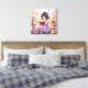 A sweet illustration of a little anime girl reading a book. She is surrounded by lovely nature with pink and purple flowers and musical notes floating above her. If your child likes anime, reading and music this wall art is perfect!