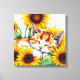 Toile Cute Napping Kitten and Sunflowers
