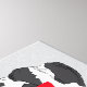 This design objets a main drawn portrait of Dalmatian dressed in red glasses and heart design bow tie.