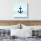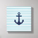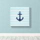 8" x 8" Toile enveloppée à thème de pépinière nautique pour la pépinière. Ancrage bleu foncé imprimé sur arrière - plan rayé bleu clair et blanc.