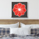 Une fleur tropicale rouge orangé décore cette toile d'art brun foncé. Ce dessin en toile est parfait pour la décoration tropicale, un thème hawaïen, des filles, des ados, une chambre d'hôtes, une chambre, une maison de plage, un salon, une salle à manger, un hôtel, etc...Le design est de l'art original.