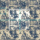 Toile de Jouy Blue Castle über das Elfenbeinalter Stoff
