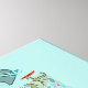 Formes organiques dessinées au hasard dans une palette de bleus, jaunes et rouges sur un arrière - plan cyan clair