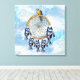 Un attrapeur de rêve qui comprend le cercle rond de bambou et perles rouges dans le web avec des plumes bleu exotique perroquet sur un arrière - plan doux de plumes blues.