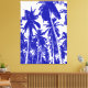 Photographie de palmiers tropicaux. Des palmiers abstraits graphiques, audacieux et impressionnants, postérifiés. Bleu et blanc.