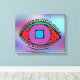Il s'agit d'une toile enveloppée très cool avec un dessin abstrait coloré en rouge, violet et bleu sur un arrière - plan violet et aqua. Fera une belle idée cadeau pour un ophtalmologiste ou un optométriste!