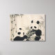 Avec une seule encre noire, le peintre dépeint les pandas avec une gamme complète de teintes. Le bambou est peint haut et droit, avec des feuilles se balançant et chantant au vent. Chubby et mignon, deux pandas géants ici sont dessinés de couleur pâle. Ajoutés à l'encre noire sur leurs yeux, oreilles et jambes, les sujets se caractérisent par leur plumpy et adorable. La jumelle a toujours une signification positive dans la culture chinoise ; une paire de pandas à la chatte symbolise en outre les réunions, l'harmonie et le bonheur. Les plantes ont aussi de bonnes significations, comme les bambous suggérant l'intégrité. Avec ces deux objets privilégiés, cette image est donc pleine de voeux de bonheur.