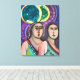 Deux femmes sous la lune colorée abstraite oeuvre d'art de l'IA. Bi couple racial ou meilleurs amis.