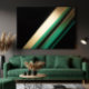 Sophisticated design featuring diagonal stripes in gold and emerald green over a black background. Ideal for high-impact corporate backgrounds, premium presentations, and modern decor. Conveys innovation, wealth, and timeless sophistication.