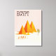 Scène simpliste de pyramides avec une ligne de chameaux qui traversent le côté gauche.