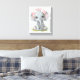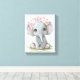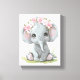 Mignon et adorable éléphant bébé aquarelle avec des fleurs roses sur sa tête, toile murale pour la chambre de vos petits. Disponible en plusieurs tailles.