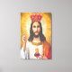 Jésus King Wrapped Canvas a Jésus avec ses bras en l'air et une couronne rouge et il a une tenue rouge orange et blanche avec un coeur et croix sur la poitrine.Ceci est une photo vintage du début des années 1900