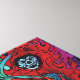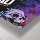 Découvrez ce graffiti de personnage Diablo avec une flamme à la main, sur un arrière - plan de mortels, de crânes et de sang.