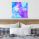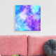 Impression de toile avec un arrière - plan abstrait cosmique. Couleurs vives et éclatantes de bleu clair, rose et violet. Des étoiles blanches éparpillées un peu partout.