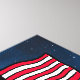 Cette oeuvre Peanuts célèbre le 50ème anniversaire de l'orbite 10 Apollo 1969 de la lune et l'atterrissage de la lune Apollo 11. Ce design présente Snoopy dans son costume orangé arborant le drapeau américain.