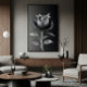 A rose sculpted in liquid silver, petals mirroring light with razor-sharp elegance. Against a dark backdrop, it symbolizes strength, purity, and mystery—an artwork transcending nature, evoking the sublime.