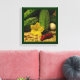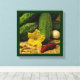 C'est l'été et les concombres pendent de leurs vignes. Il est temps de faire des cornichons ! Cette photographie d'art de la toile enveloppée présente tous les ingrédients importants : concombres, ail, piment chaud et épices de marinade. Une fleur de concombre jaune a été ajoutée pour la décoration.